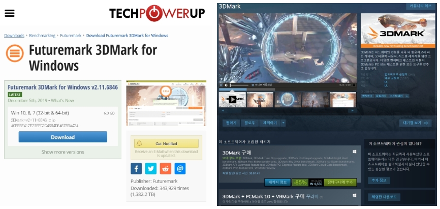3D Mark 다운로드는 게임 플랫폼인 스팀에서도 다운받으실 수 있으며, 홈페이지에서도 다운로드 받으실 수 있습니다.
