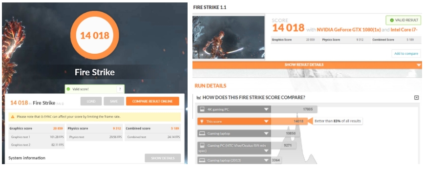 3D Mark의 벤치마크 점수가 사용하시는 그래픽카드의 절대적인 수치는 아닙니다. PC 구성품의 CPU 및 다른 제품에 영향적인부분으로 점수가 다를 수 있으며, 주변 환경에 따라 미세한 점수차이가 날 수도 있습니다.