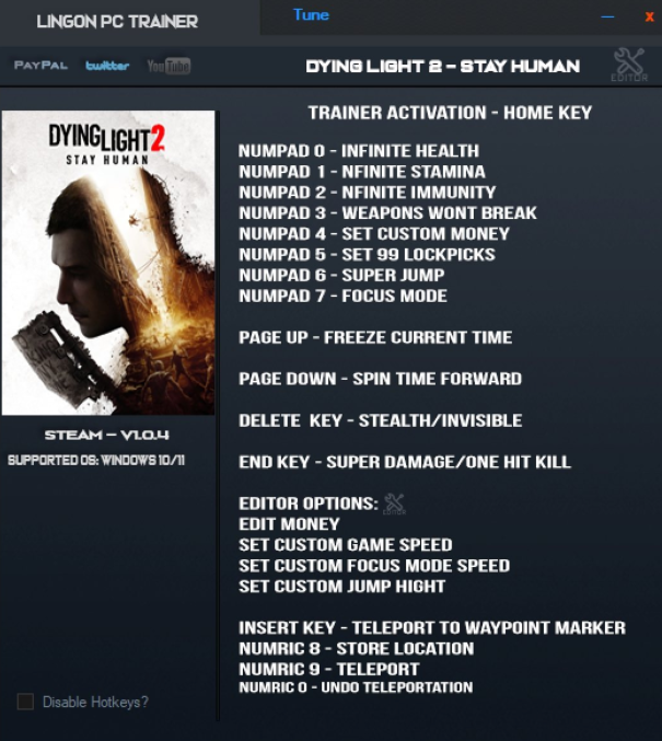 오늘의 리뷰는 다잉라이트2 트레이너 입니다.