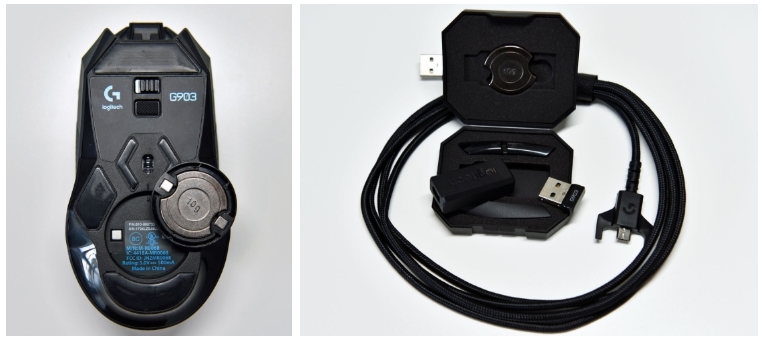 Logitech G903 Wireless는 사용자 타입에 따라 무게를 조절할 수 있습니다. 마우스 맡부분의 동전모양의 커버를 열게되면 Unboxing 시 동봉되어진 무게추를 장착하여 사용타 타입에 맞게 무게를 조절 할 수 있습니다. 다만 무게추가 고정된 무게여서 최대 10g만 증가되는 점은 약간 아쉬운 부분입니다. Logitech G903 Wireless 기본 무게 110g에서 최대 120g까지 무게 조정이 가능합니다.