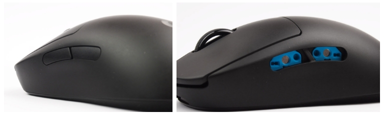 Logitech G Pro Wireless는 클릭부분이 비대칭이 아닌 대칭형태로 오른손, 왼손 게이머 모두 사용이 가능합니다. 또한 사이드 버튼도 게이머의 손모양에 따라 커스텀을 할 수 있습니다. 또한 엄지 손가락에 알맞는 위치에 사이드버튼이 위치한 점도 매우 훌륭하였습니다.