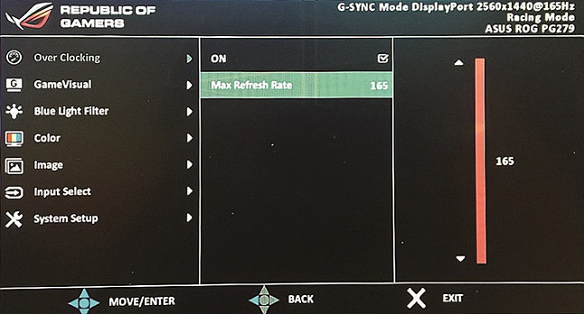 ODS 진입 할 경우 기본적인 Over Clocking, Game Visual, Blue Light Filter, Color, Image, Input Select, System Setup 항목이 노출되며, 각 항목 설정이 가능 합니다.