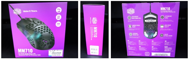 Cooler Master MM710 Gaming Mouse의 외관은 벌집형태의 타공망 형태의 쉘로 되어 있습니다. 이 마우스의 가장 큰 장점은 일단 벌집형태로 되어있어서 마우스의 전체적인 무게를 절감할 수 있습니다. 이로 인하여 Cooler Master MM710 Gaming Mouse는 극단적인 가벼운 무게가 형성이 됩니다. 예전부터 마우스 매니아층에서 벌집형태의 마우스를 3D 프린터로 직접 제작할때도 벌집형태로 만들곤 하였는데, 실제 브랜드에서 이러한 형태의 마우스를 출시하여 신선하였고, 개성넘친다는 생각을 하게 되었습니다.