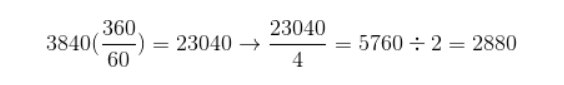 4K 기준 → 3840 모니터 해상도(시야각 60 ÷ 총 시야각 360) = 23040(1인치)