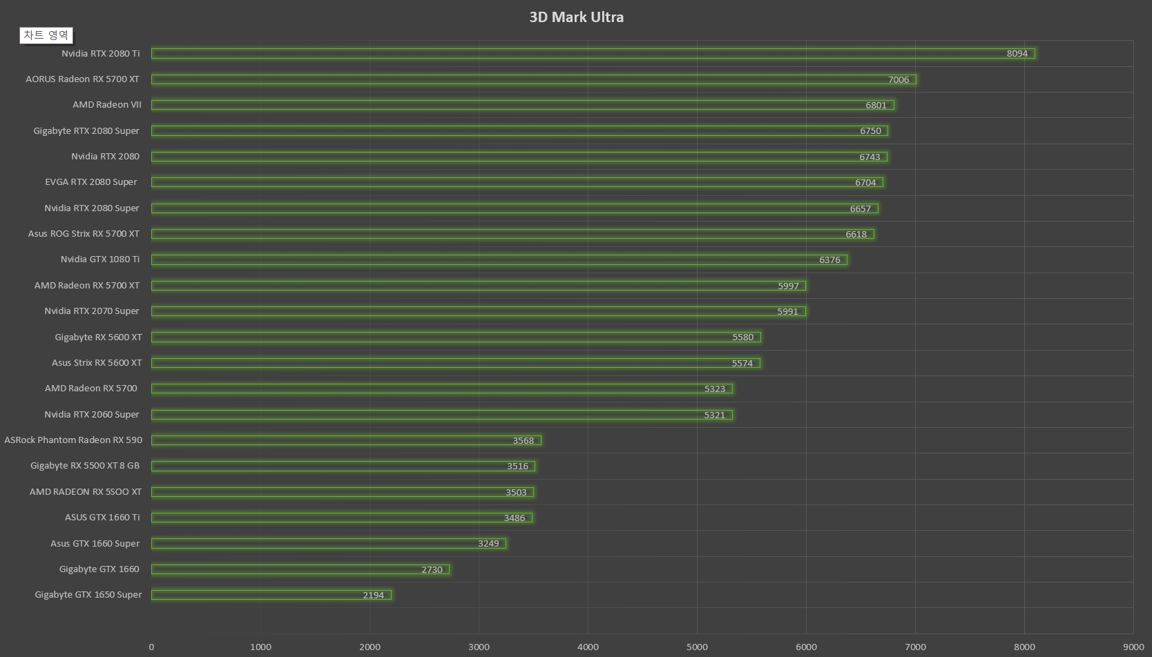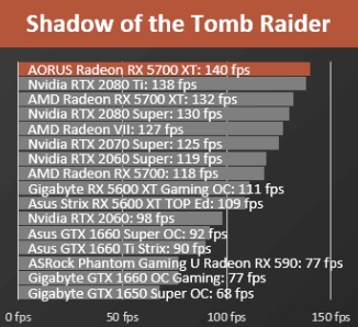 이제는 AORUS Radeon RX5700XT 그래픽카드가 NVIDIA의 어느정도 성능일지 비교를 해봐야 합니다.