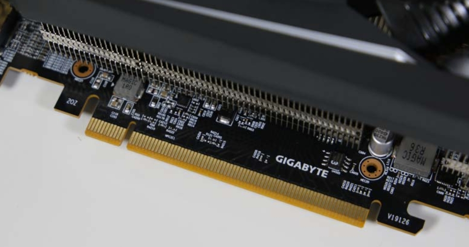 제품 정면에는 Gigabyte의 기술력을 볼 수 있는 3팬 구성의 윈드포스 스틱 3X으로 되어 있으며, 3팬 구성으로 되어 있어서 2팬보다 발열효과가 뛰어납니다.