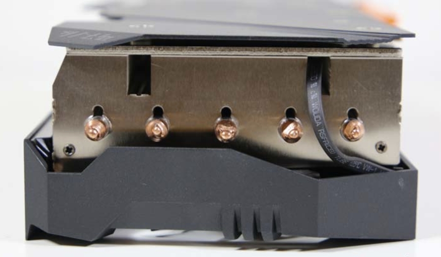AORUS Radeon RX5700XT 제품의 히트파이프는 뛰어난 발열 쿨링을 해소하기 위하여 VRAM에 직접 접촉 영역을 극대화하여 쿨링 시스템을 구축하였습니다. 또한 일반적인 구리 파이프가 아닌 열 전도율이 뛰어난 복합형 히트 파이프를 선택하여 기존에 비하여 12% 뛰어난 쿨링 성능을 보여 줍니다.