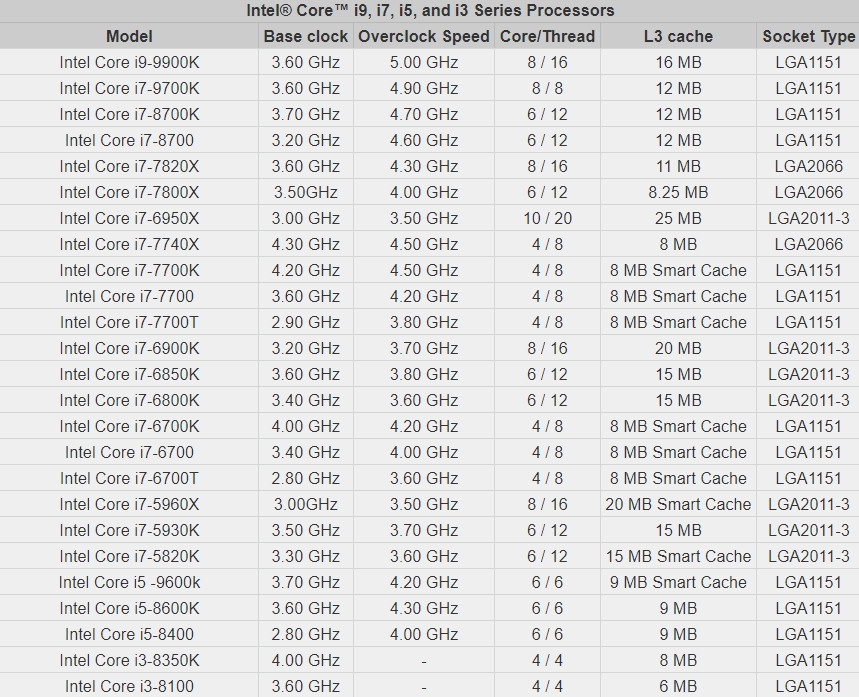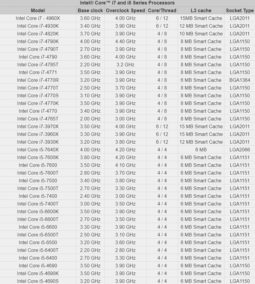 아래 리스트를 보시고 사용자 사용빈도가 가장 많은 유형의 CPU를 선택하시면 좋을 것 같습니다.