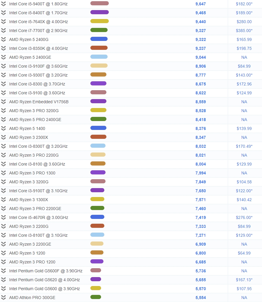 Average CPU Mark 점수 기반 랭킹 순