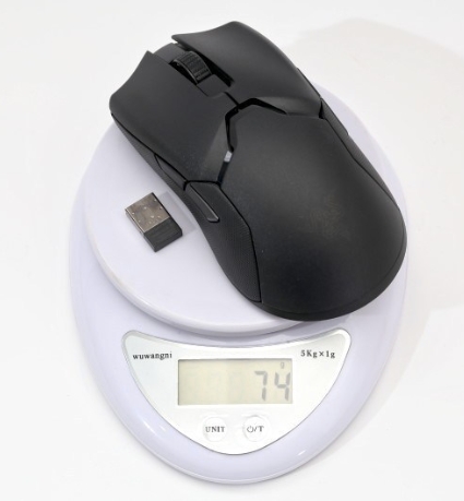 Razer Viper Ultimate의 가장 큰 장점은 고성능 게이밍 마우스인데, 매우 가볍운 무게를 보여줍니다. 보통 게이밍 마우스의 평균 무게는 100g~130g인데, 무려 절반 가까운 74g 무게로인하여 빠르고 부드럽게 제어가 가능합니다.