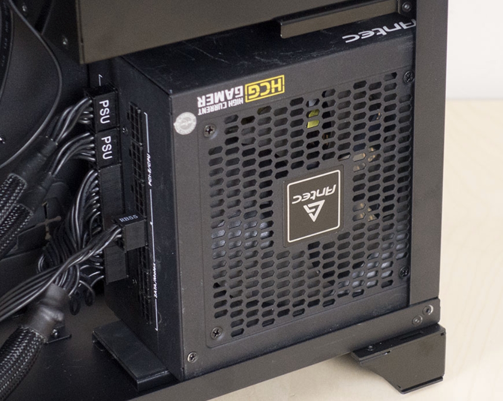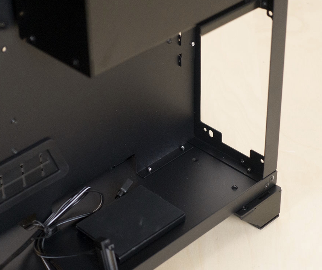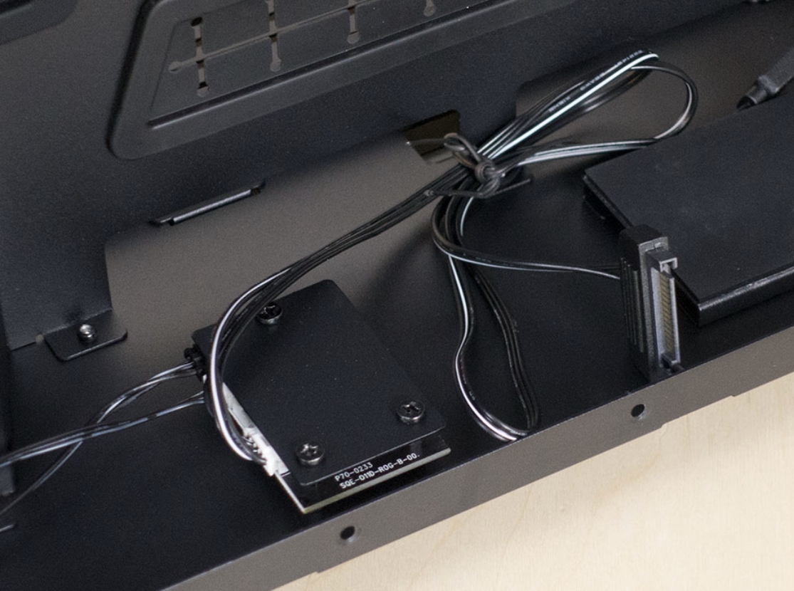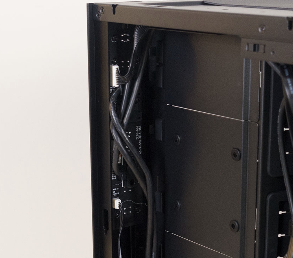 PSU Tray에는 기본적이지만 방진을 위하여 고무패드가 존재합니다. 또한 RGB 컨트롤러가 PSU옆에 있는데, 공간의 깔끔함을 제공하기 위하여 밑부분에 설치되어 있으며, 공간효율을 극대화 시킨것을 느낄 수 있었습니다.