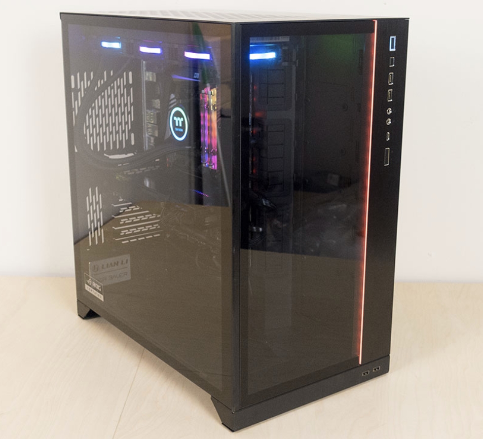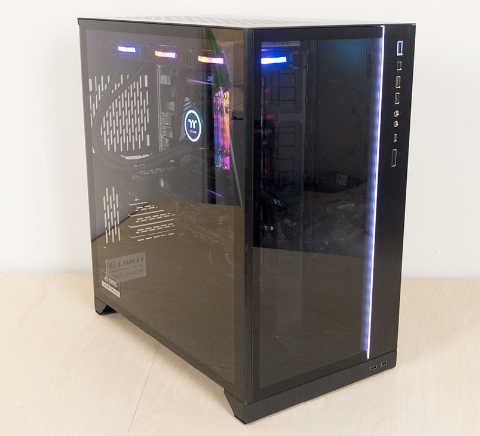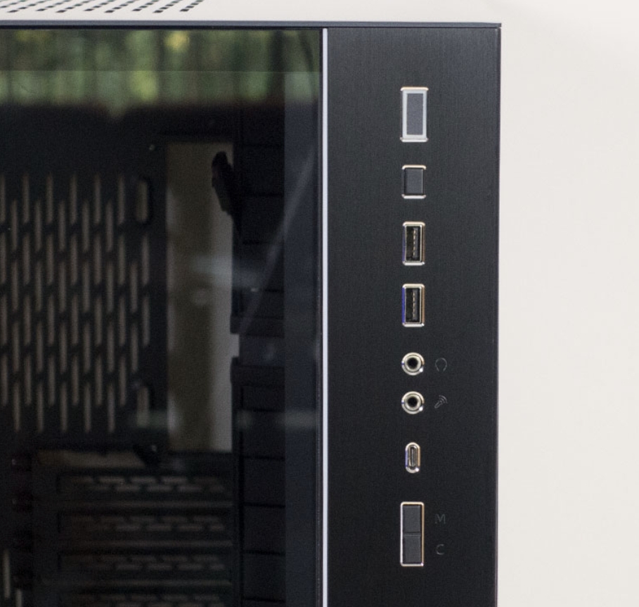 Lian Li O11 Dynamic XL 케이스는 ROG와 긴밀한 협력하에 광범위한 테스트 및 검증을 거치고 ROG 장비와 완벽하게 작동할 수 있도록 특별히 설계된 케이스 입니다. 이미 Razer와 동급모델이지만 크기가 작은 Lian Li O11 제품과 동일하다고 볼 수 있습니다. 전면부에는 I/O 를 볼 수 있으며, 자석식 오픈 유리 케이스가 측면에 있어 쉽게 열고 닫을 수 있습니다.