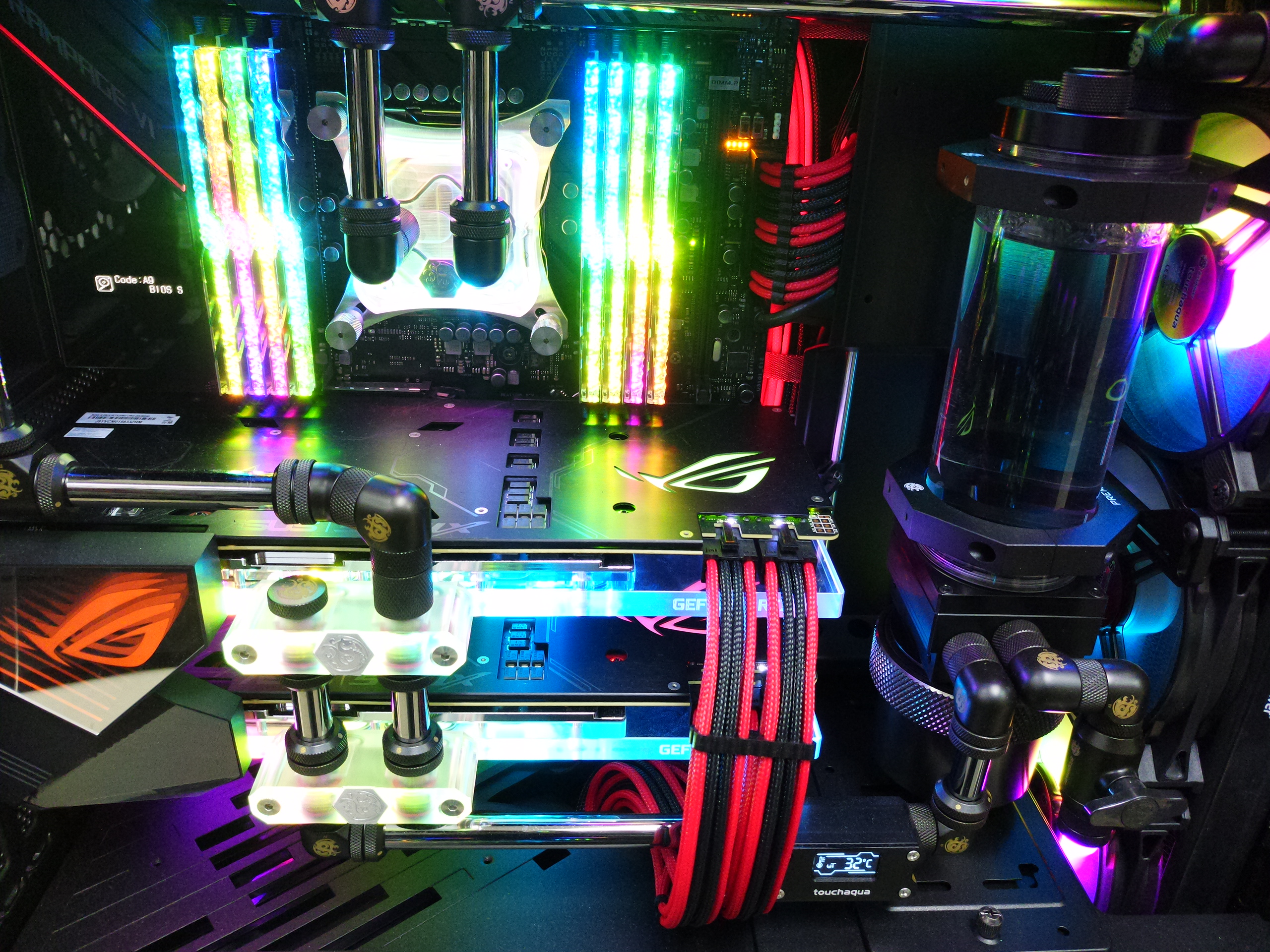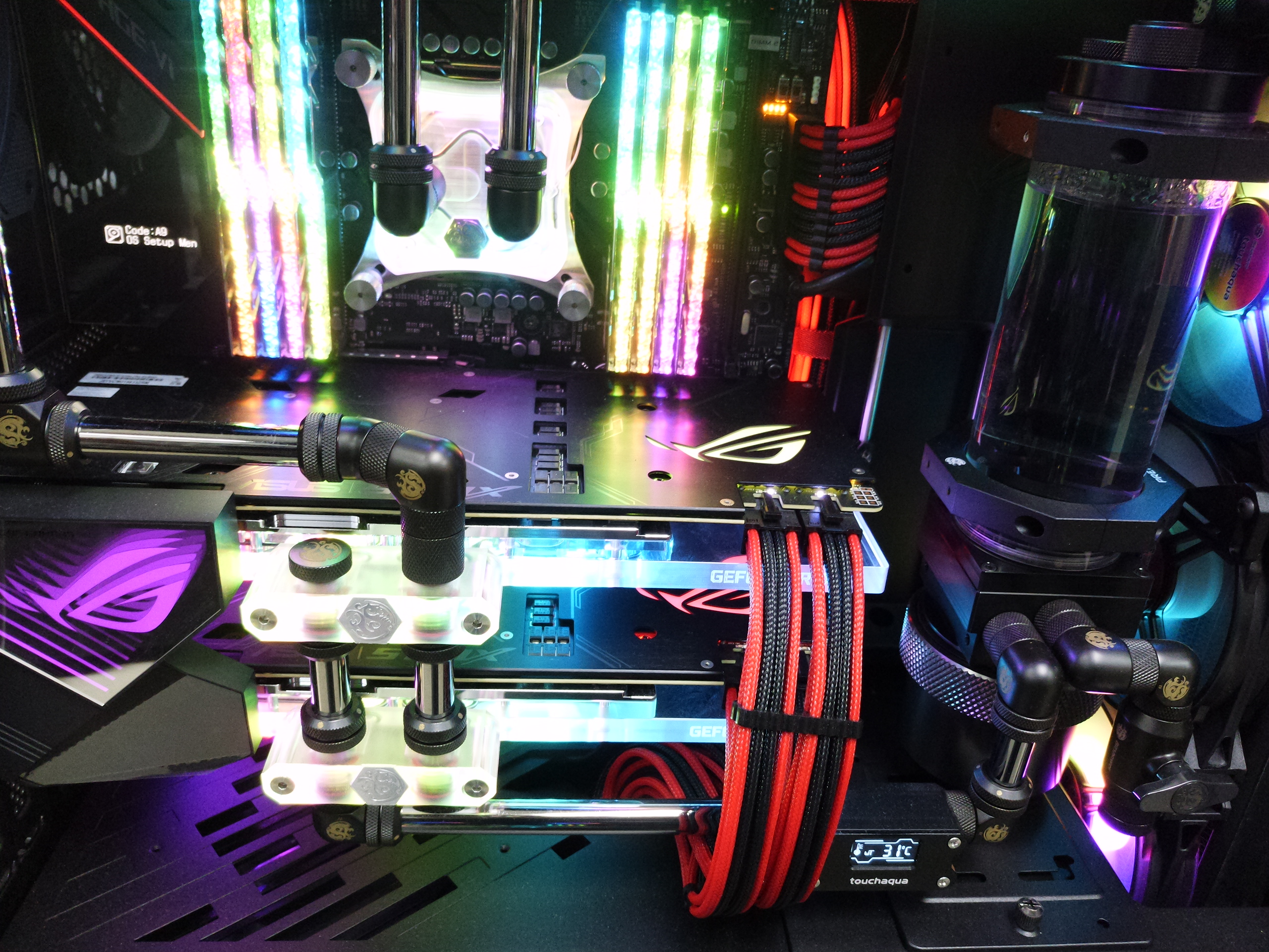 Lian Li O11 Dynamic XL 케이스로 제작된 커스텀 수냉 PC 입니다. 개인적으로 공간 효율이 넓직해서 구성하기가 매우 쉬운 제품이었습니다.