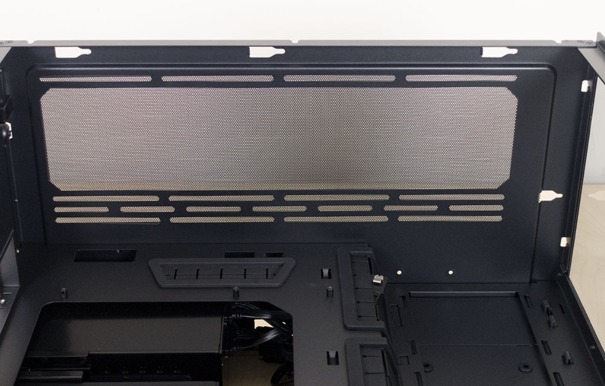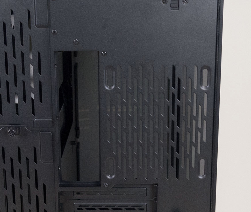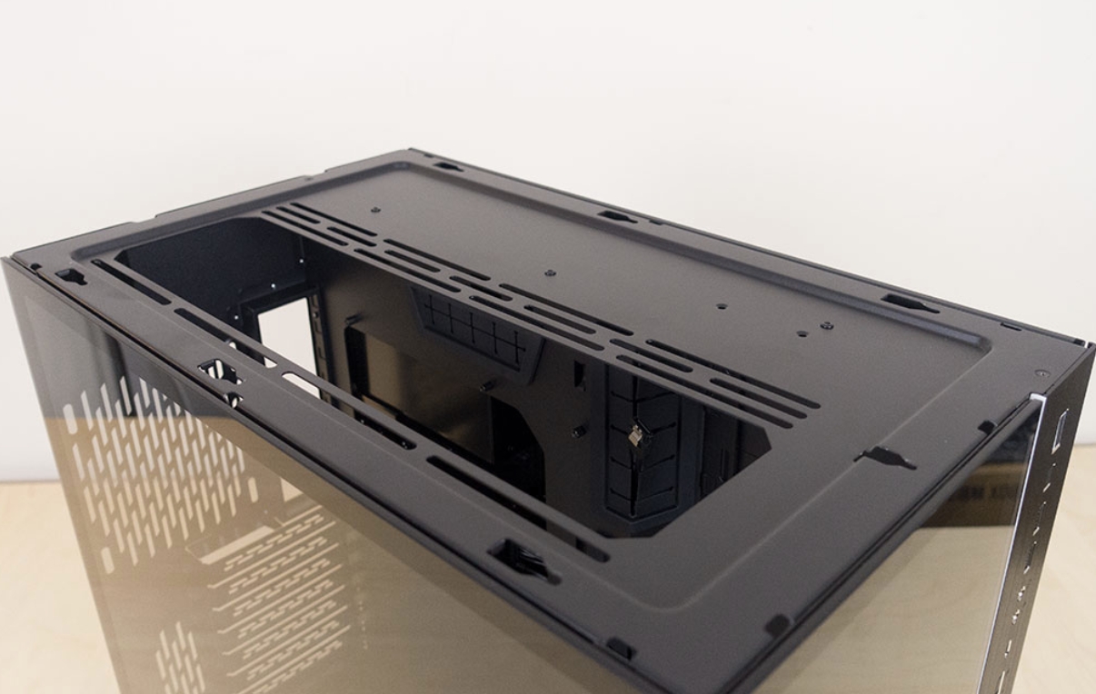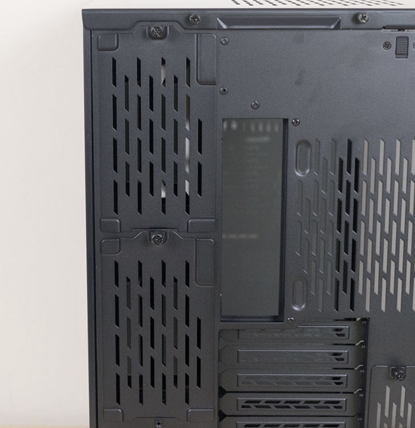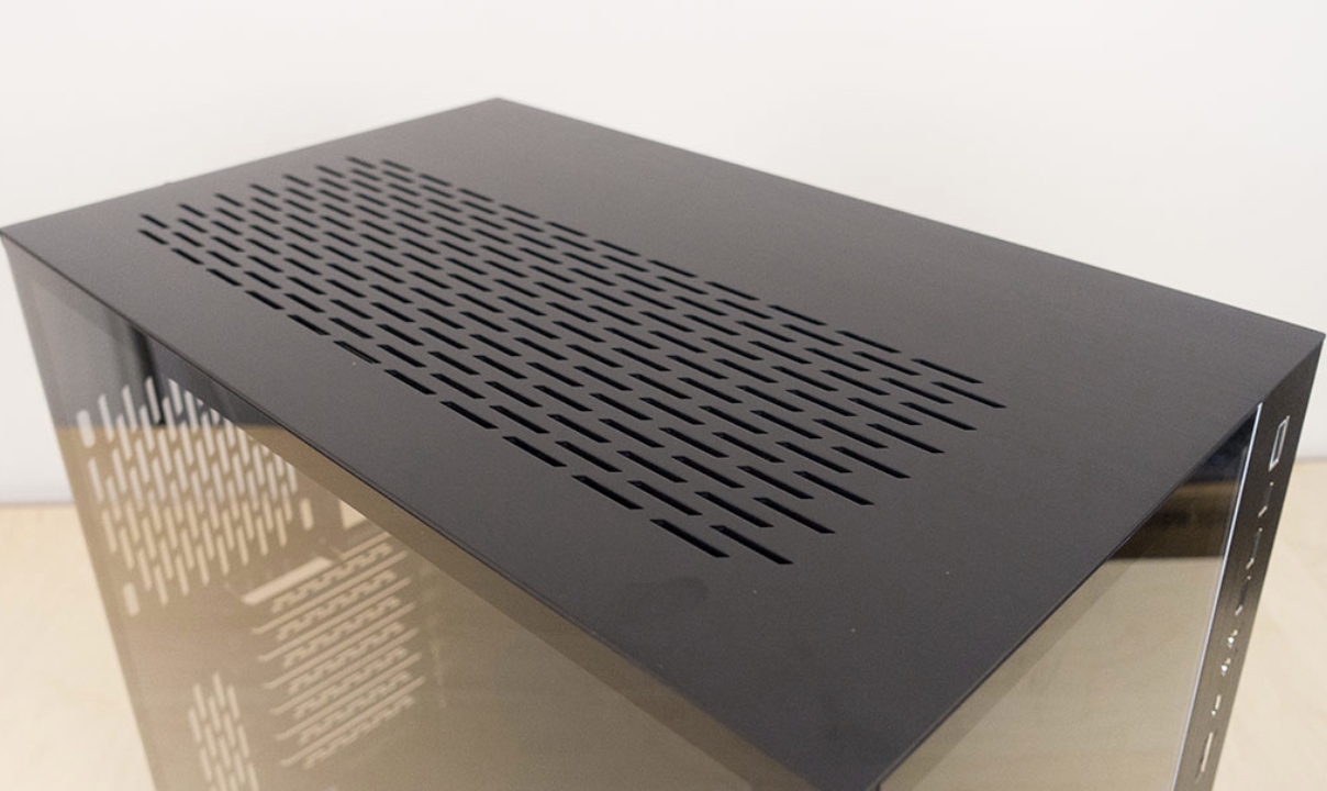 Lian Li O11 Dynamic XL 케이스는 윗부분은 고품질의 알루미늄을 아노다이징처리하였으며, 또한 내부 발열을 해소하기 위하여 통풍 구멍이 있습니다. 또한 상단 패널이 잠금형태로 되어 있어서 덜그럭거리는 유격을 방지하고 손쉬운 원터치 잠금 해제 방법으로 관리가 가능합니다.