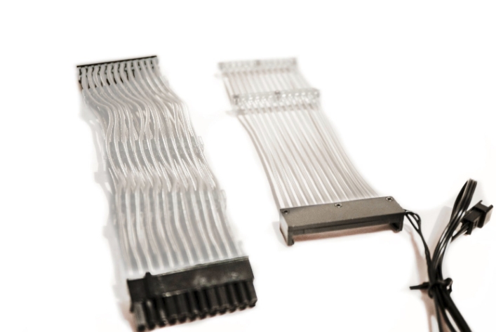 Lian-Li STRIMER RGB 24핀 케이블은 2중 케이블 구조로 되어 있습니다. 하나는 독립적으로 조명 효과를 나타내는 케이블이며, 두번째는 전원 공급 장치(메인보드 24핀 소켓) 으로 되어 있습니다.