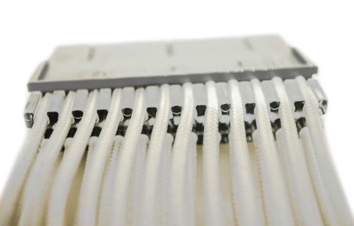 Lian-Li STRIMER RGB 24핀 케이블 제품은 2중 구조로 두번째 층은 슬리핑 케이블로 되어 있으며, 메인보드에 전력을 공급합니다. 이렇게 2중 구조로 되어 있는 이유는 각 독립적 설계를 통하여 전력 흐름이 일정하고 서로간의 간섭이 없게 하기 위함입니다.