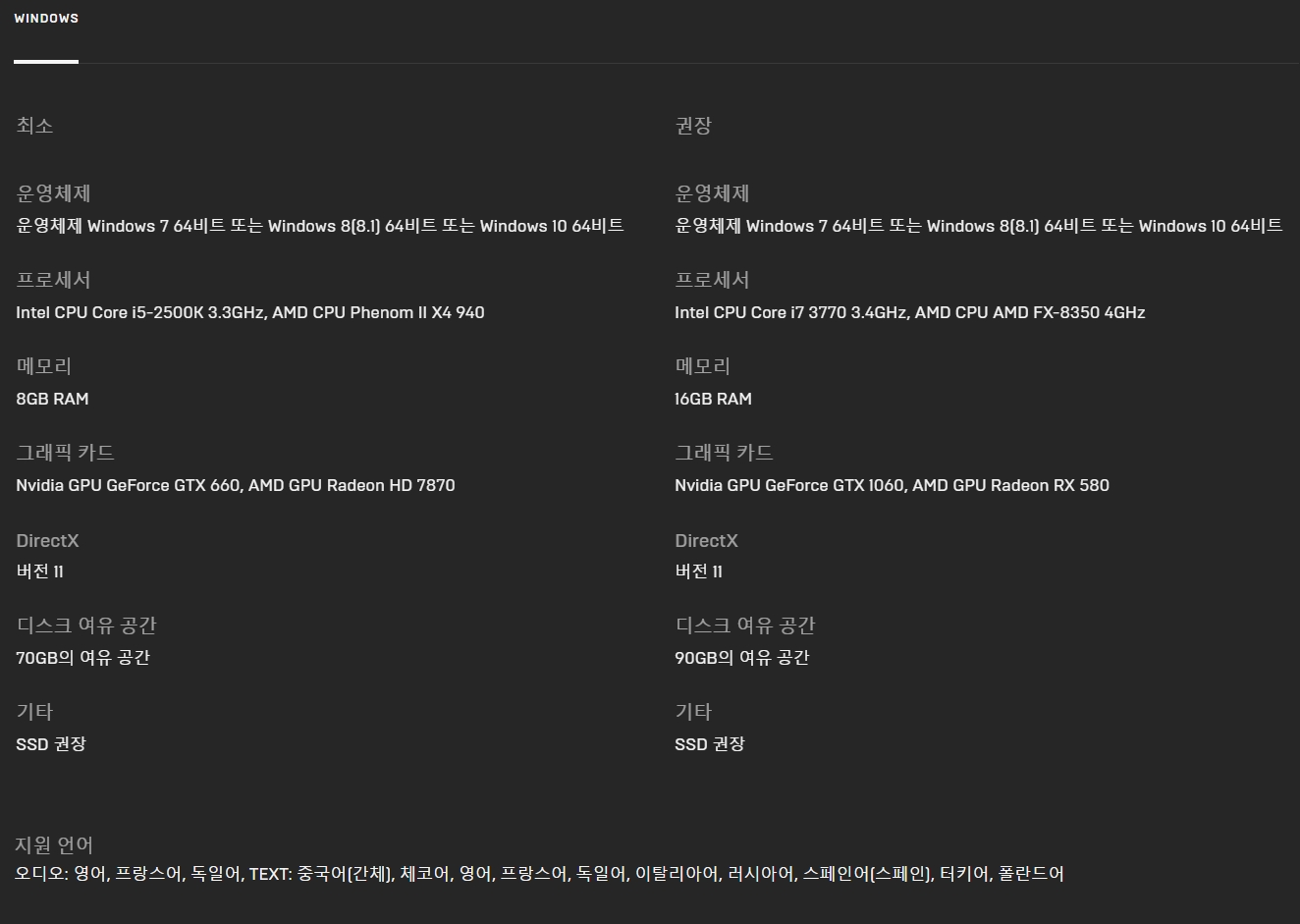 한가지 이 게임에서 가장 아쉬운점은 스토리성이 매우 뛰어난 게임이라고 하는데, 한글 지원이 되지 않습니다.