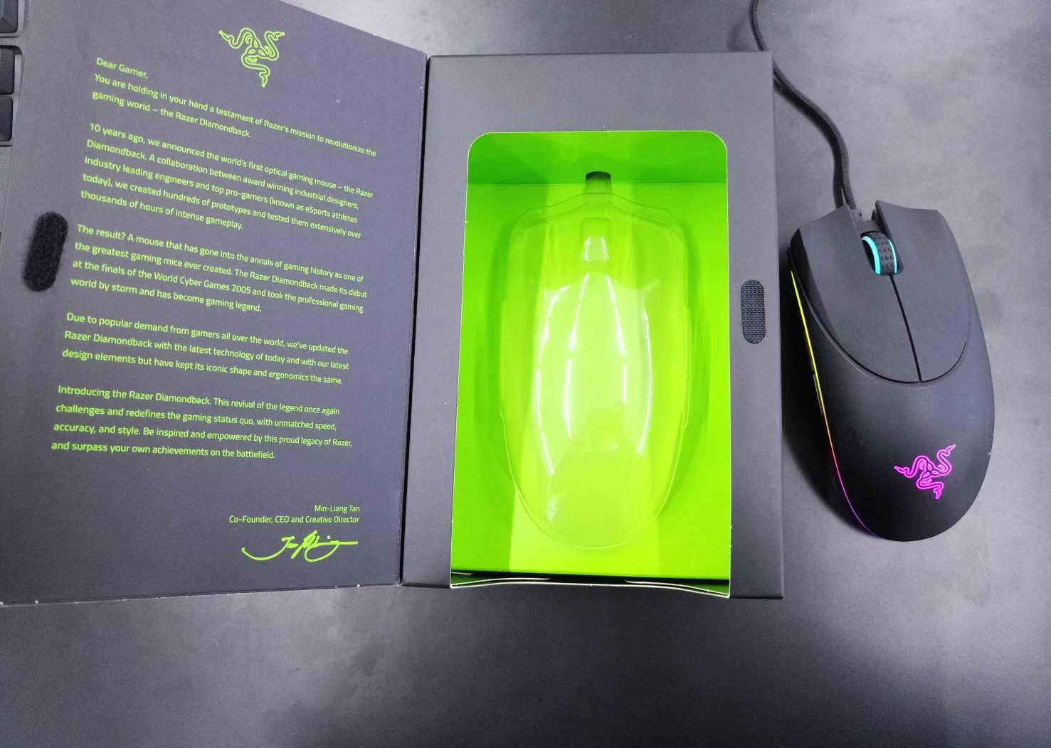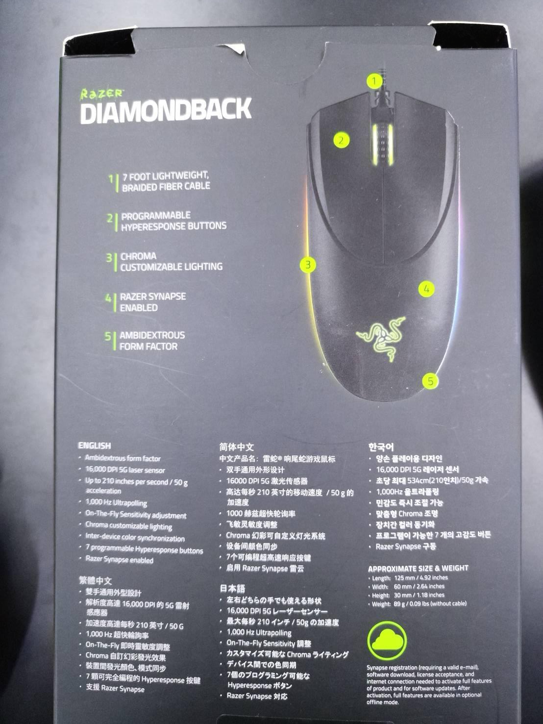 당시에 Razer DiamondBack은 매우 고급스러운 양손잡이용 마우스였고, 이 당시 매우 높은 가격을 자랑하기도 했었습니다.