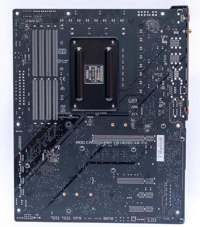 후면부의 납땜성형과 마감을 보았을때, 3대 메인보드 제조회사다운 면모를 확인할 수 있었습니다. 사실 모든 전자제품의 납땜이나 PCB 구조만 보아도 이 제품이 좋은 제품인지 뚜렷하게 구분지을 수 있는데, Asus X570 ROG Crosshair VIII Hero Wi-Fi 고급 라인 메인보드 다운 깔끔하고 군더더기 없는 마감을 확인 할 수 있었습니다.