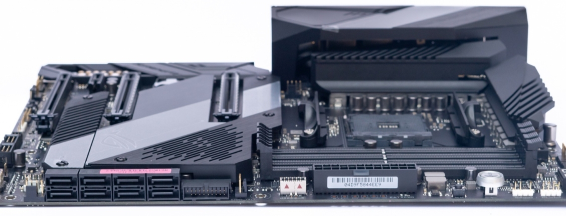 Asus X570 ROG Crosshair VIII Hero Wi-Fi 제품은 정면 큼직막한 히트싱크 구역에 M.2 SSD 2개와 메인보드 사이드에는 SATA 포트 8개를 지원하는 포트를 확인 할 수 있습니다. 확실히 최근들어 하드디스크의 필요성이 높아지고 있는 만큼 많은 SATA 지원 포트 수와 M.2 지원 슬롯이 2개라는 점은 좋은 메인보드인것을 확인 할 수 있습니다.