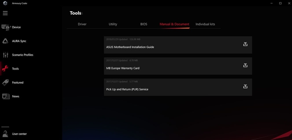Armory Crate 는 Asus에서 새롭게 만든 올인원 소프트웨어 패키지 입니다. 다운로드는 MS 마켓이나 Asus 공식 홈페이지에서 다운로드를 받으실 수 있으며, 위의 5가지 항목에 대해서 사용자 컨트롤이 가능합니다.