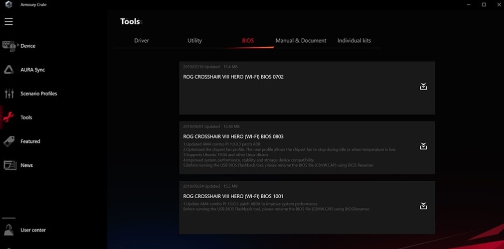 다만 Armory Crate를 처음 설치할 경우 몇번의 재부팅 및 업데이트를 해주셔야하며, 메인보드의 최신 드라이버를 쉽게 설치하실 수 있습니다. 기본적으로 드라이버 다운로드와 Aura Sync 설정이 간편해져서 매우 편리하다는 생각을 들게 하지만 CPU를 많이 잡아먹는 관계로 실제 벤치마크 프로그램을 돌리게된다면, 최소 1,500 ~ 2,000 점 가량의 PC 성능하락을 보여줍니다.