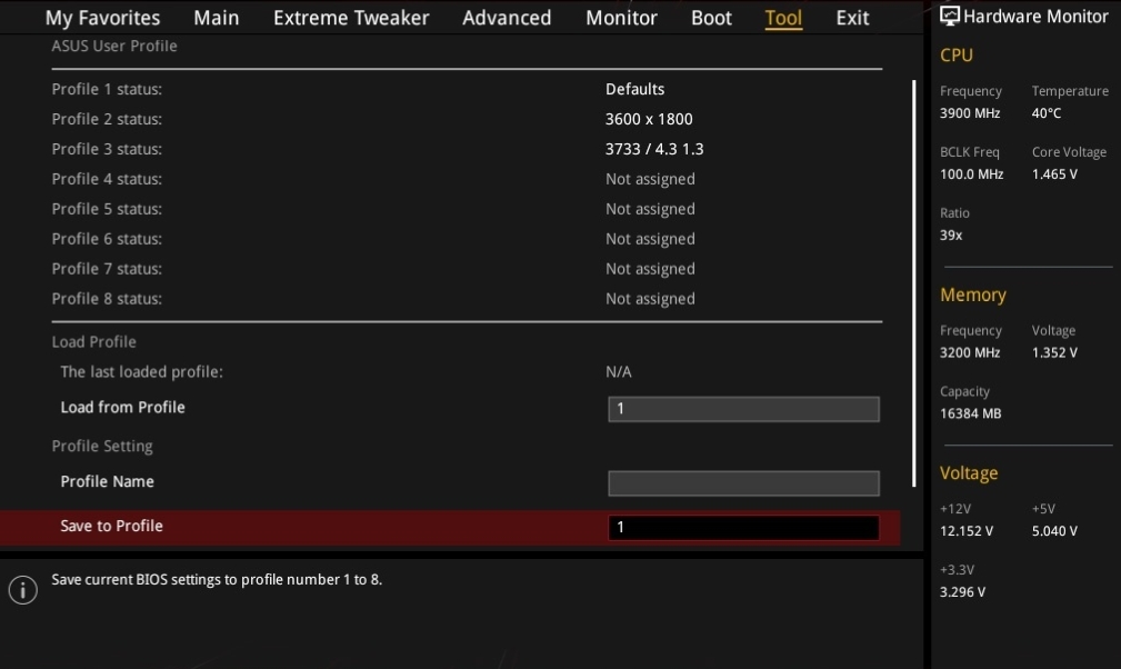 BIOS의 초기화 및 사용자 프로파일 등을 사용할 수 있는 항목 입니다. 개인적으로 사용자 프로파일을 잘 활용한다면 시간 절약을 비약적으로 단축시킬 수 있습니다.