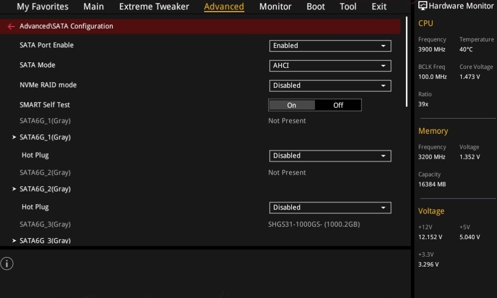 Advanced 항목에서는 SATA, M.2 하드드라이브에 설정을 진행하실 수 있습니다. 참고하실 점은 아무리 Advanced에서 설정을 해주셔도 Main 값으로 진행된다는 점입니다.