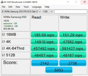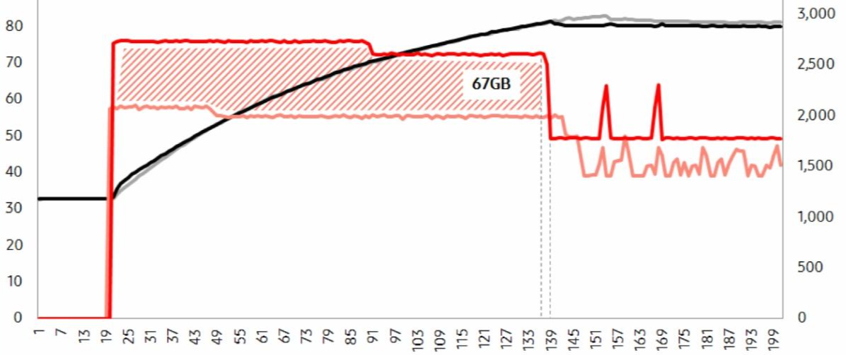 Samsung 970 Pro 1TB M.2 2280 제품으로 알 수 있는 사실은 TLC M.2 SSD와 속도적인 부분에서 드라마틱한 차이점을 느낄 수 없다는 점입니다. 다만 MLC이기 때문에 TLC SSD에 비하여 지속력이 조금 뛰어난것 볼 수 있으며, 대용량 작업에서는 TLC 제품과 차이가 나는 것을 알 수 있습니다.