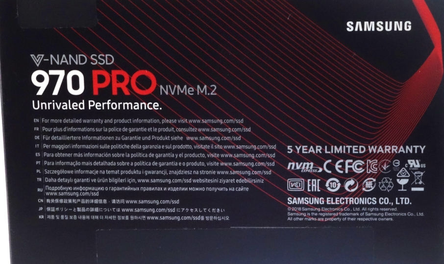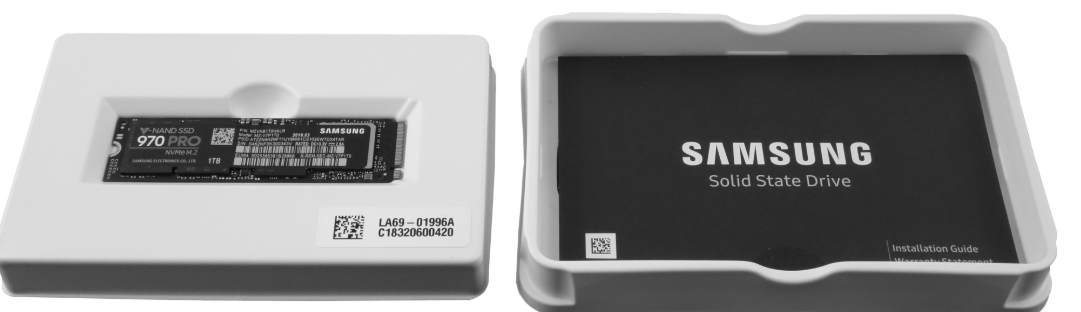 Samsung 970 Pro 1TB M.2 2280 제품은 모든 M.2 SSD 제품과 동일하게 매우 심플한 박싱 구성으로 되어 있습니다.