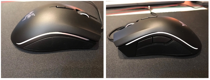 오른손잡이 위주의 인체공학 설계가 되어 있어 다소 비대칭 버튼으로 되어 있으며, 비대칭 각은 매우 작은 편입니다. 다만 엉덩이 부분이 다소 굴곡지었고, 이로 인하여 F9~F11 손 크기의 게이머에게 매우 좋은 그립감을 보여줍니다. 마우스 양쪽에는 Razer Chroma 가 있습니다. 다만 클릭 버튼이 보통 크기라 팜그립에 어울리며, 클로그립과 핑거그립 유저에게는 추천하지 않습니다. 디자인적으로는 "Razer 마우스에요" 라고 말하고 싶습니다.