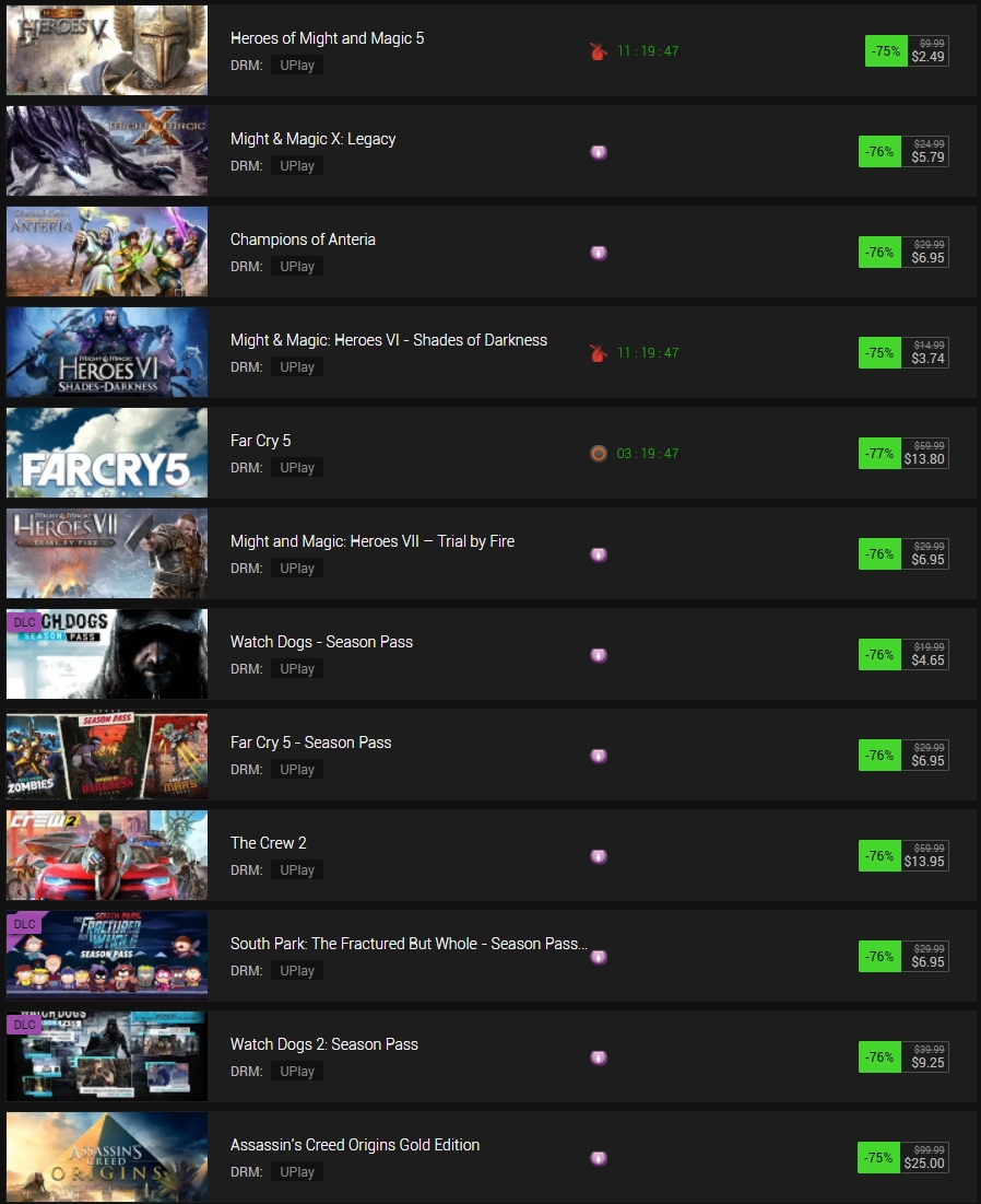 | [Game] 2020년 3월 2째주 유비소프트 75% 이상 할인 리스트 (0) | 2020.03.13 |