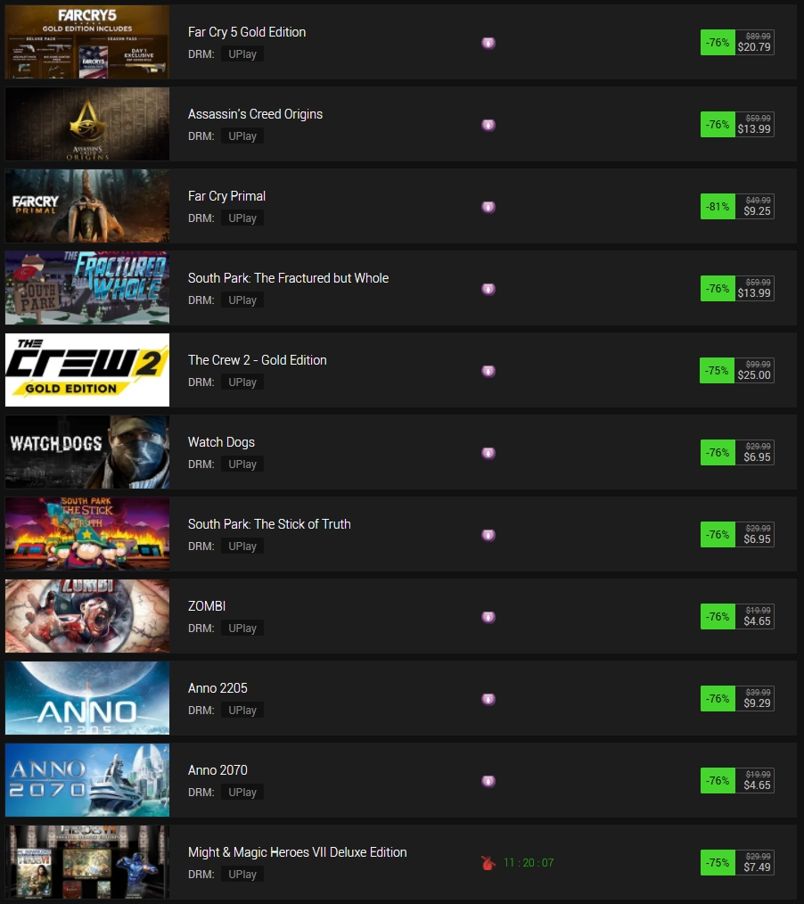 오늘의 리뷰는 2020년 3월 2째주 유비소프트 75% 이상 할인 리스트 입니다.