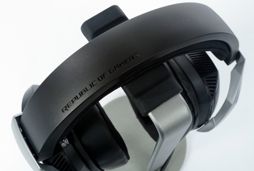 머리띠 부분은 Asus ROG 이니셜을 확인하실 수 있으며, 매우 튼튼한 소재와 내구성이 포함된 재질로 구성되어있다는 것을 느낄 수 있습니다. 더불어 깔끔한 마감도 확인하실 수 있습니다.