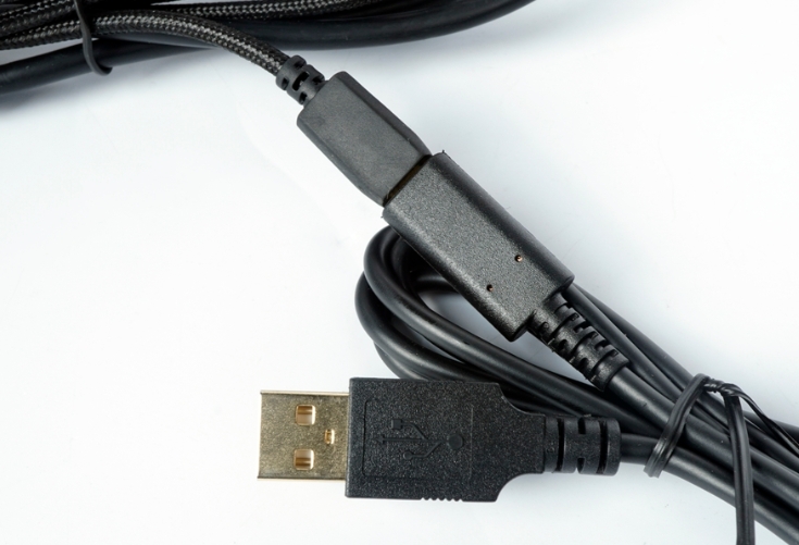 ASUS ROG Theta 7.1 제품에는 2가지 타입의 USB 포트가 존재합니다. USB Type-C, A 이며, 모든 포트에 금도금 처리가 되어 있습니다. 이로인하여 내구성 향상을 기대할 수 있으며, 다양한 멀티플랫폼(PC, MAC, PS4)에도 손쉽게 연결하여 사용을 할 수 있습니다. 다만 케이블 선 길이가 제법 길어 헤드셋 착용 시 케이블이 자꾸 몸에 닿게되어 걸리적거리는 부분이 굉장히 많았습니다.