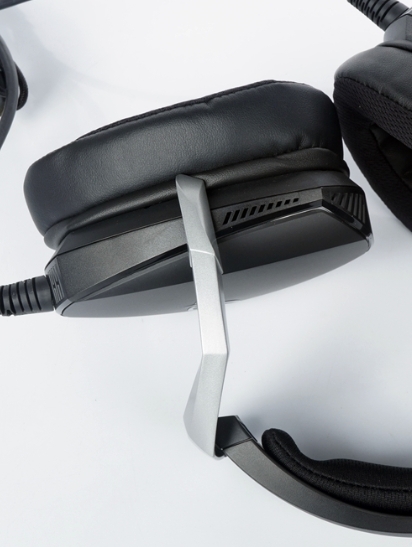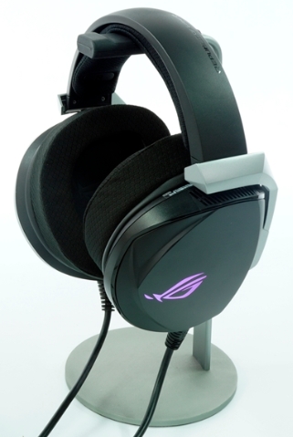 전체적인 외관은 귀덮개 부분이 매우 큼직막하며, 다양한 형태의 귀라도 편안하고 뛰어난 착용감을 느끼게 해줍니다. 또한 헤드셋에는 ROG Logo가 좌-우측에 RGB 효과를 확인하실 수 있으며, 귀쪽 부분이 90º로 접어지기 때문에 편리성 또한 향상 되었습니다.
