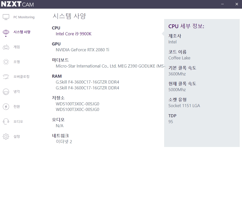 NZXT Kraken 시리즈를 사용하신다면 누구나 NZXT CAM 소프트웨어를 사용하고 계실 것입니다. 물론 소프트웨어의 버그가 조금 있긴 하지만 그래도 자신의 PC 상태를 프로그램 설치를 할경우 쉽게 알아볼 수 있으며, 추가적으로 그래픽카드 오버클러킹 기능도 제공하고 있습니다.