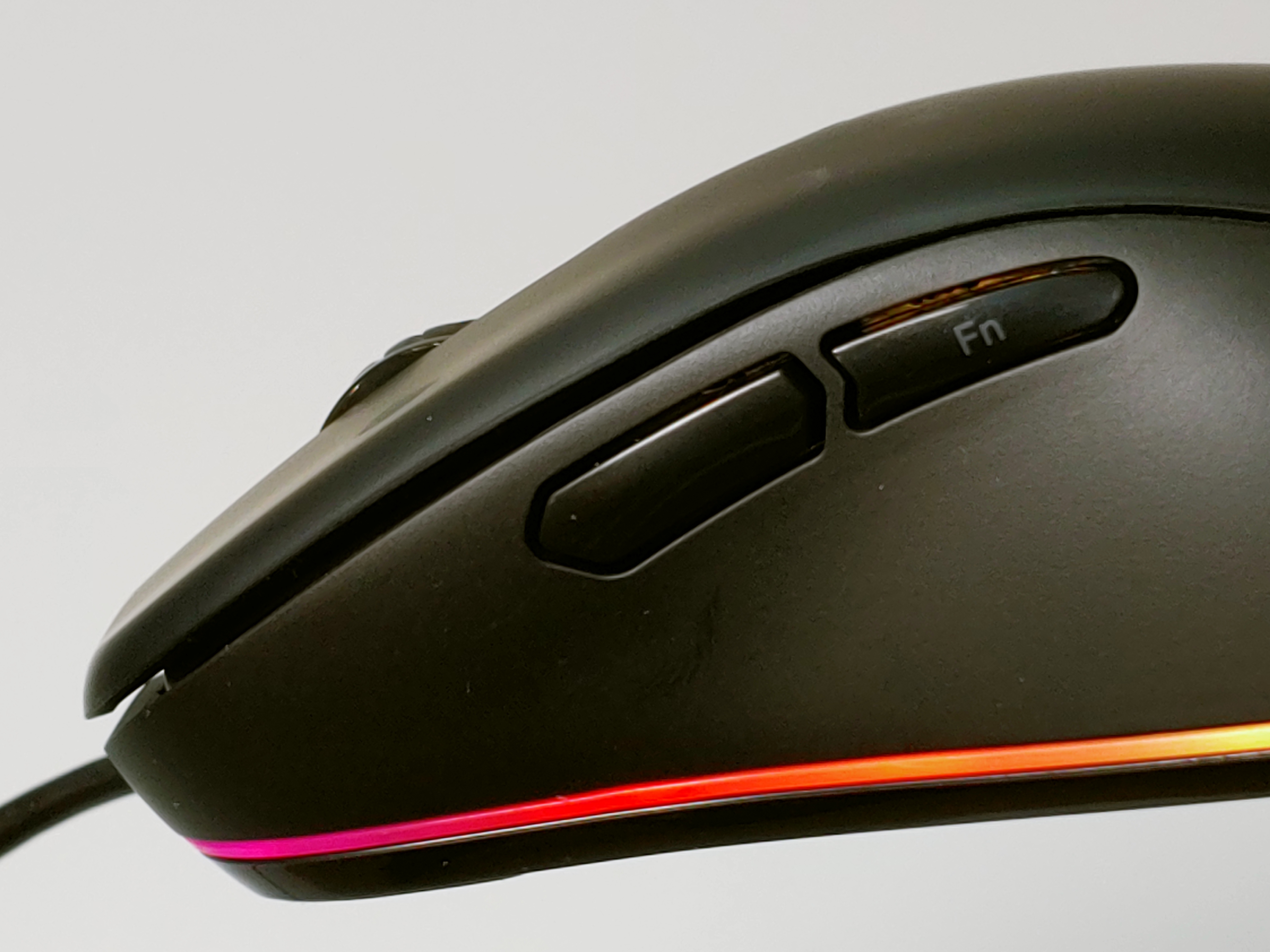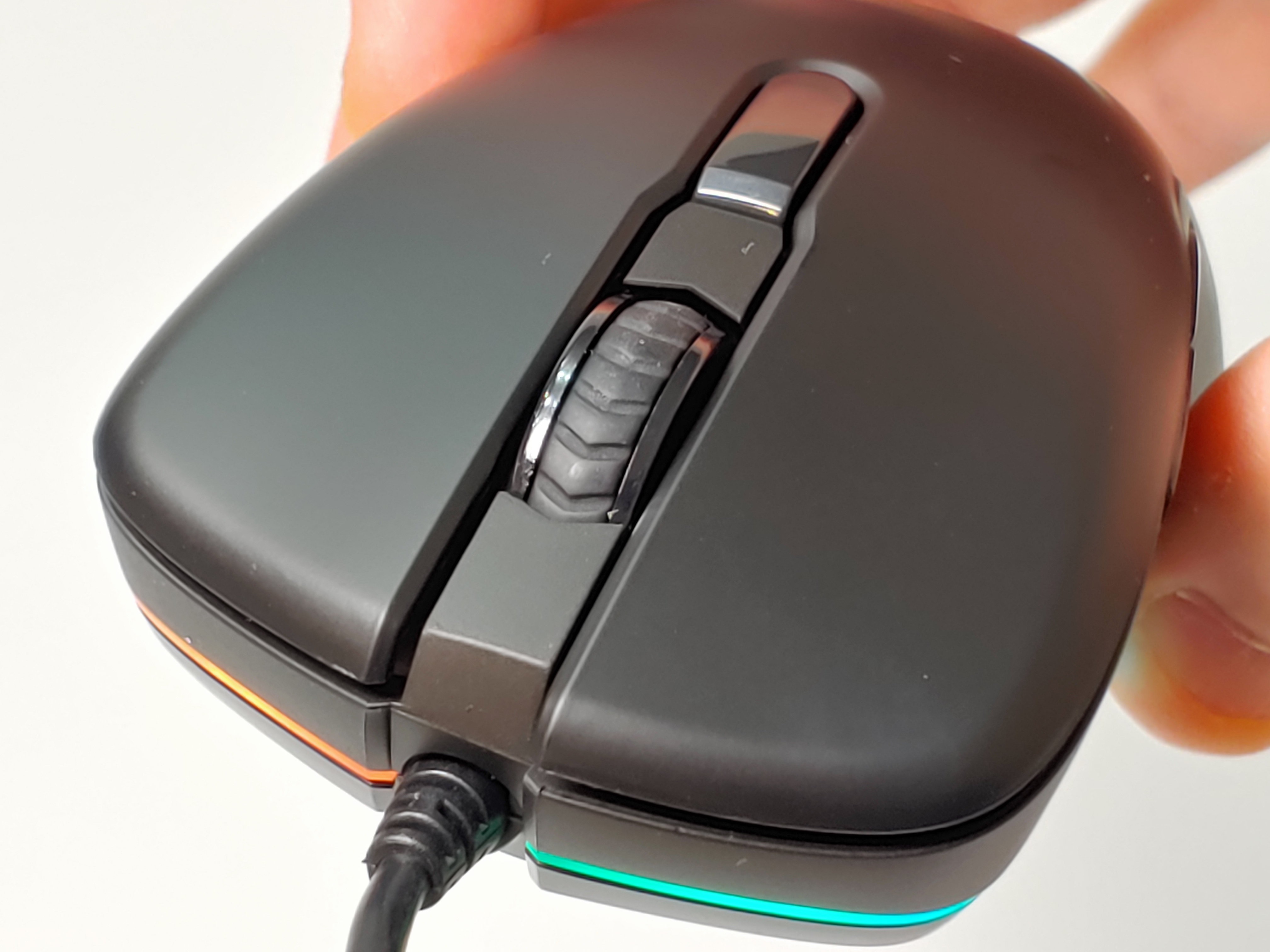 사이드 버튼과 마우스 스크롤에서는 다소 아쉬운 클릭, 휠 감도를 보여줍니다. 이는 마우스 하우징과 클릭 버튼이 일체형으로 되어있으며, 접지 부분이 비교적 크게 이뤄져있어 스위치의 클릭암이 0.75N보다 조금 더 있게 느껴지게 됩니다. 하지만 클릭 감이 확실히 구분되기때문에, 이 부분을 선호하시는 게이머에게는 매우 사용하기 좋은 마우스라고 보여집니다.