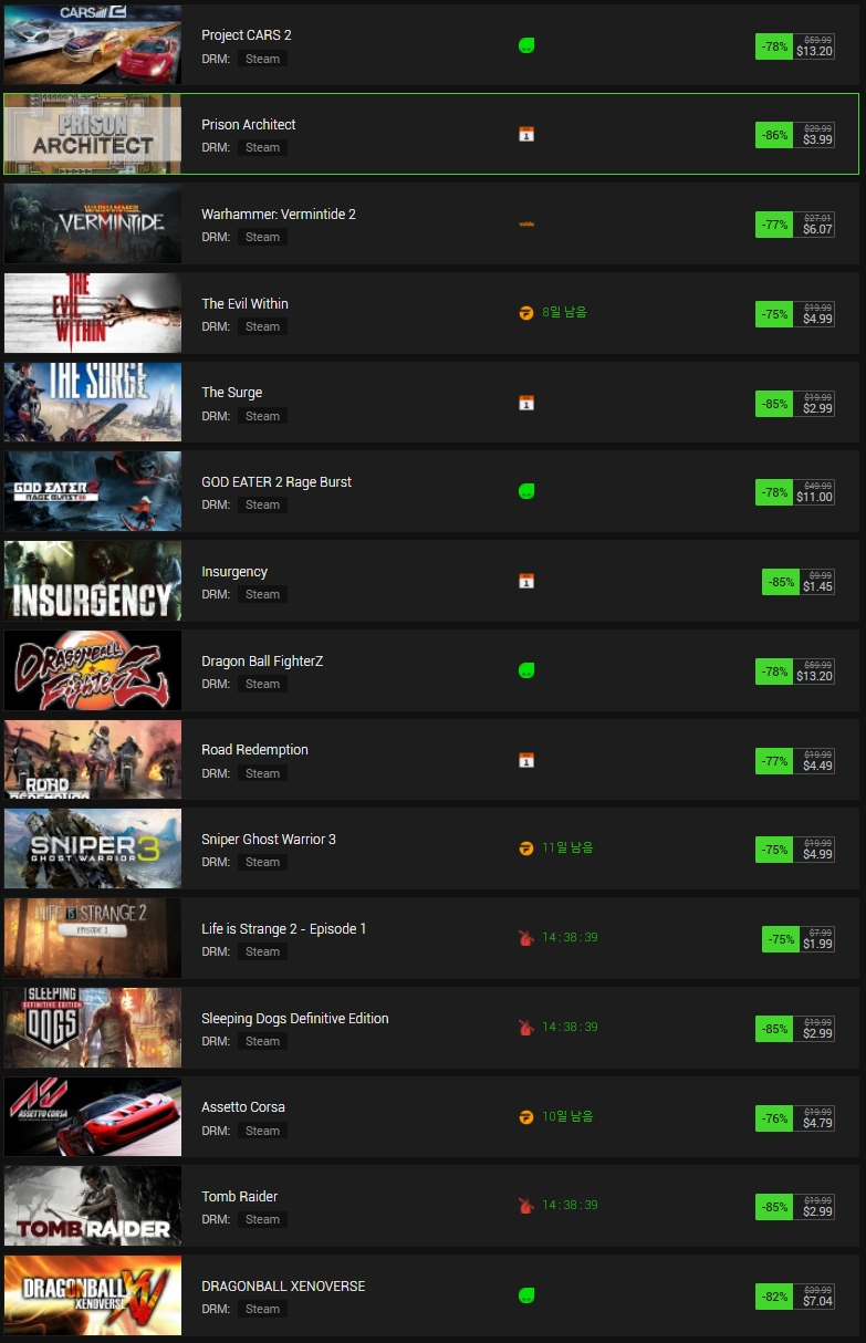 오늘의 리뷰는 3월 3째주 스팀 게임 세일 리스트 입니다.