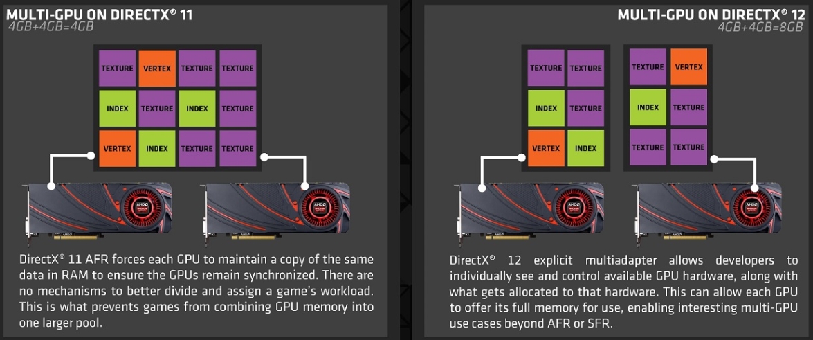 우리에게 가장 크게 기대할 수 있는 부분은 Direct 12는 이전에 비하여 CPU의 오버헤드를 줄여주며, 전력소비량이 증가, 그리고 그래픽카드의 효율성이 눈에띄게 높아졌다는 점입니다.