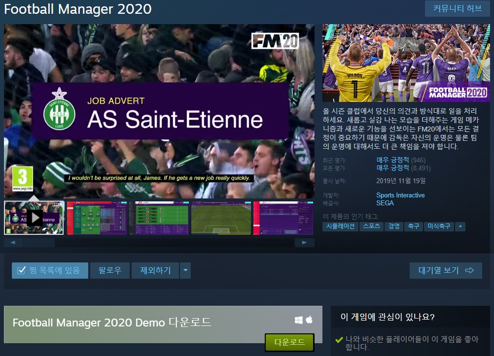 시간가는줄 모르는 악마의 게임 Top 리스트에 있는 Football Manager 2020 입니다.