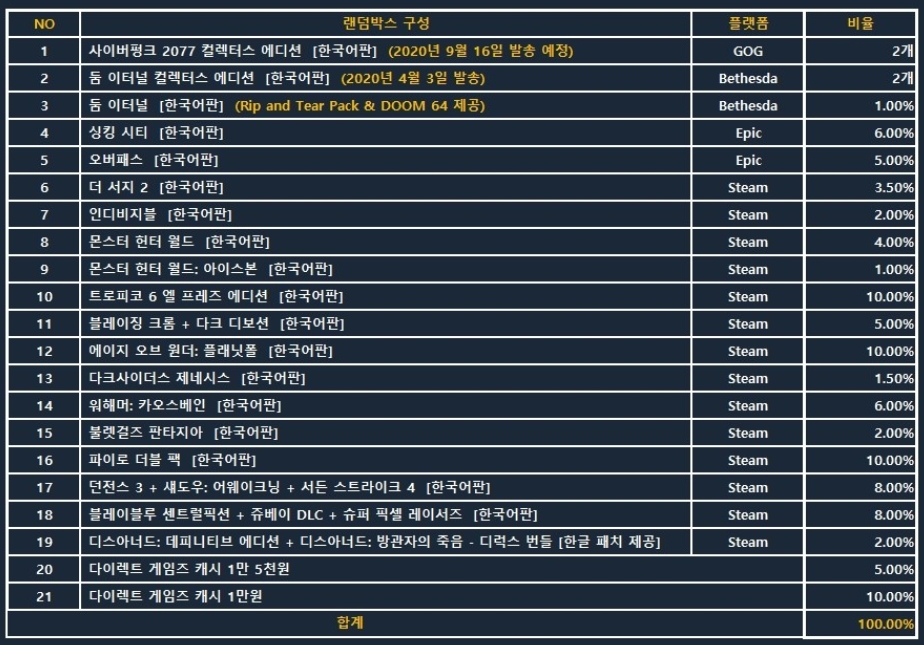 오늘부터 다이렉트 게임즈에서는 럭키박스 행사를 실시합니다. 약 50:50 확율로 본전 이상은 나올 것 같아서 구매하게 되었습니다.