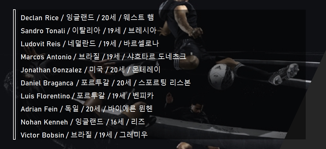 | Declan Rice | 20 | 잉글랜드 | 웨스트 햄 |