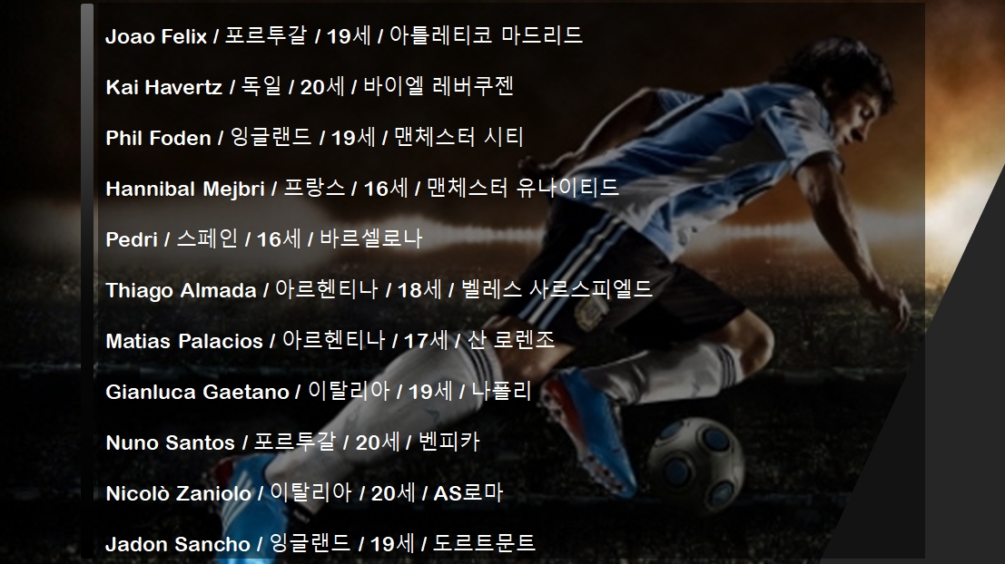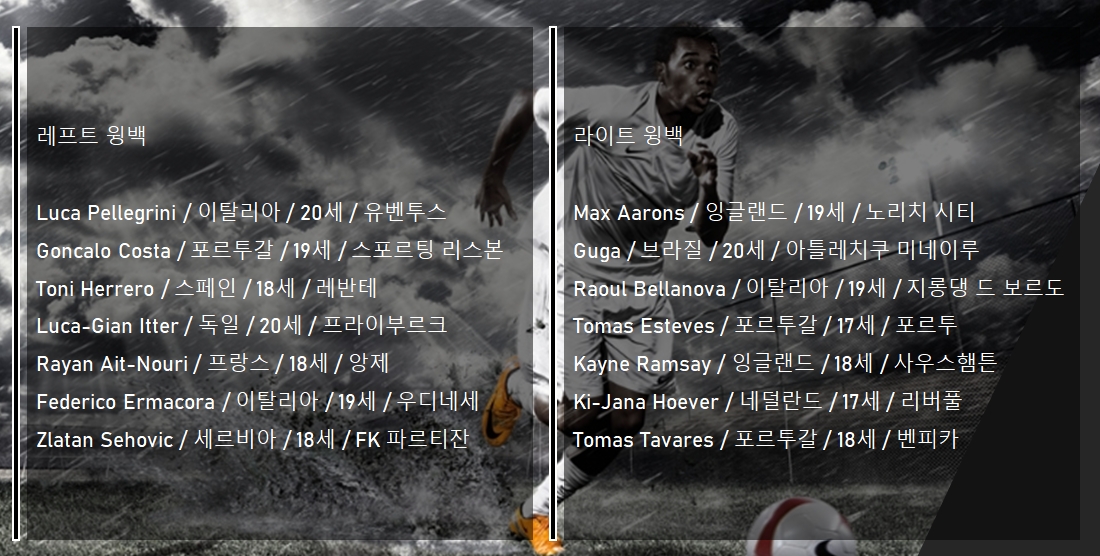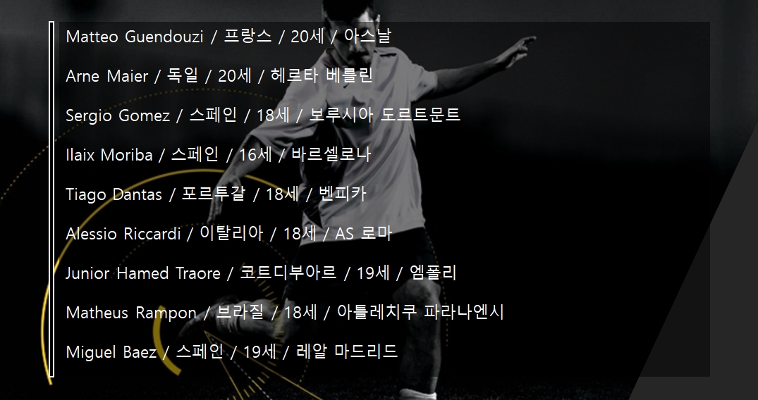 | Sergio Gomez | 18 | 스페인 | 보루시아 도르트문트 |