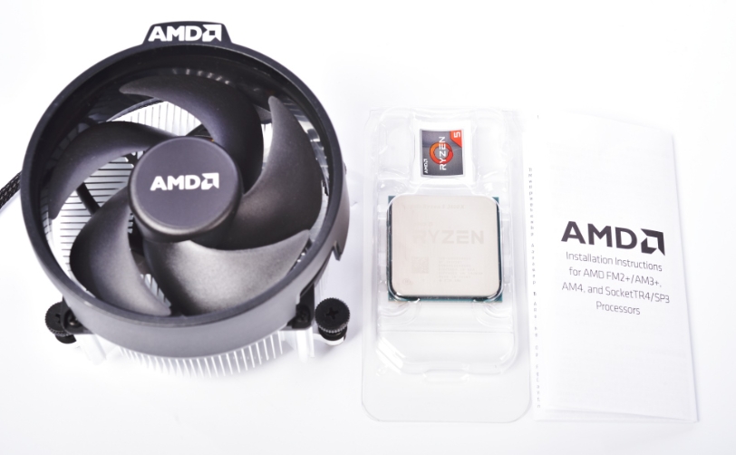 AMD Ryzen 3600X 제품은 매우 심플한 박싱으로 구성되어 있습니다. 박싱 내부에는 CPU가 외관에 노출되어 있습니다. 전면부에는 Ryzen 마크를 확인할 수 있으며, 내부 구성품으로는 기본 쿨러, CPU, 설명서가 있습니다.