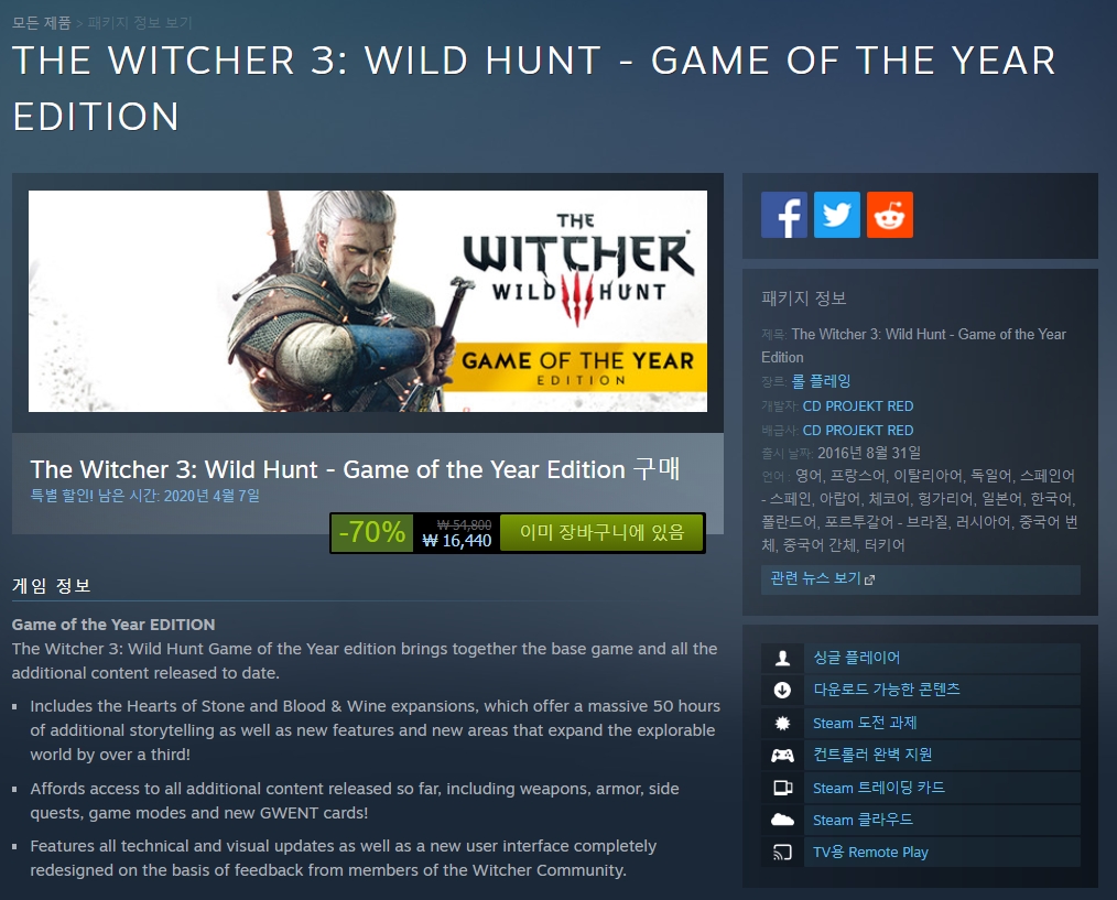 이 가격이면 현재 최저가로 DLC 피와 와인, 돌의와인 명작도 전부 구매 가능합니다.