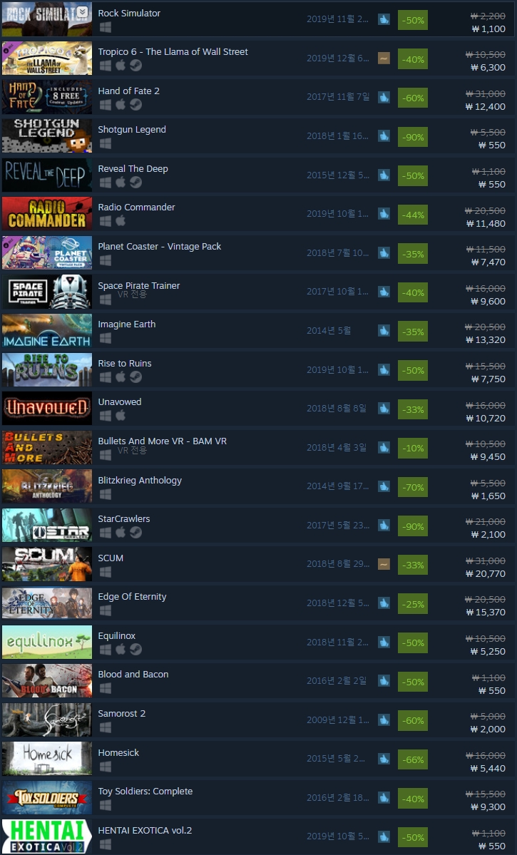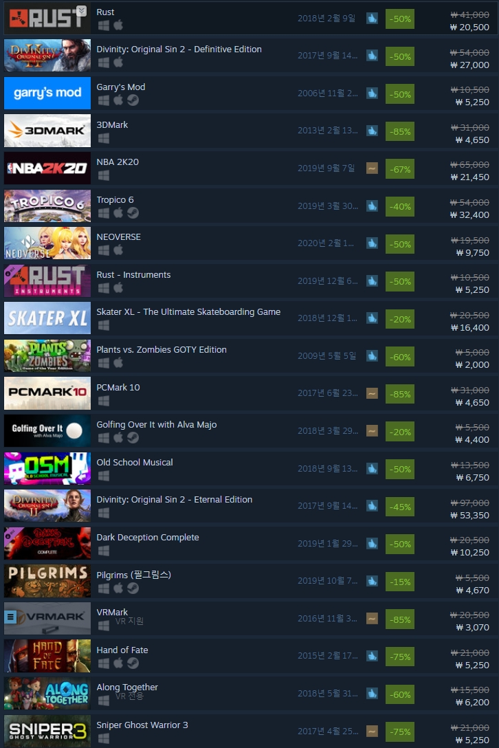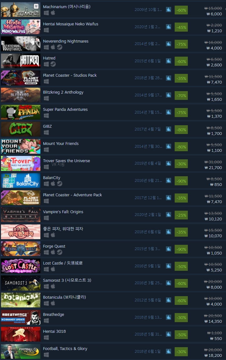 모든 게임에 대한 세일 리스트를 확인하고 싶으시다면 아래 링크를 확인해주세요.