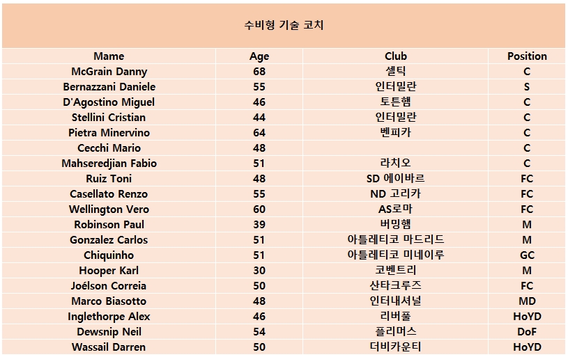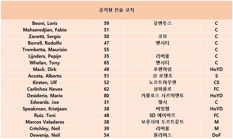 | 수비형 코치 리스트 |