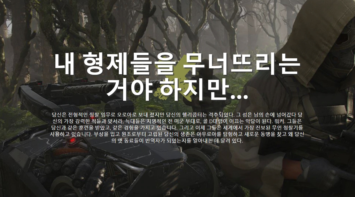 초반 스토리는 몰입감이 조금 있었지만, 나중에는 산으로 흘러가는 스토리 내용과 뭔가 신경쓸게 너무 많은 게임이라는 점이 귀찮게 느껴지는 게임이 되어버렸습니다. 생각보다 적은수의 무기 종류와 뭔가 배틀필드 느낌을 살릴려고 한거 같은데, 엄청나게 루즈한 느낌을 들게 해주었습니다. 또한 최적화도 정말....심하게 나쁘기때문에, 프레임 드랍도 빈번하게 발생되었습니다.