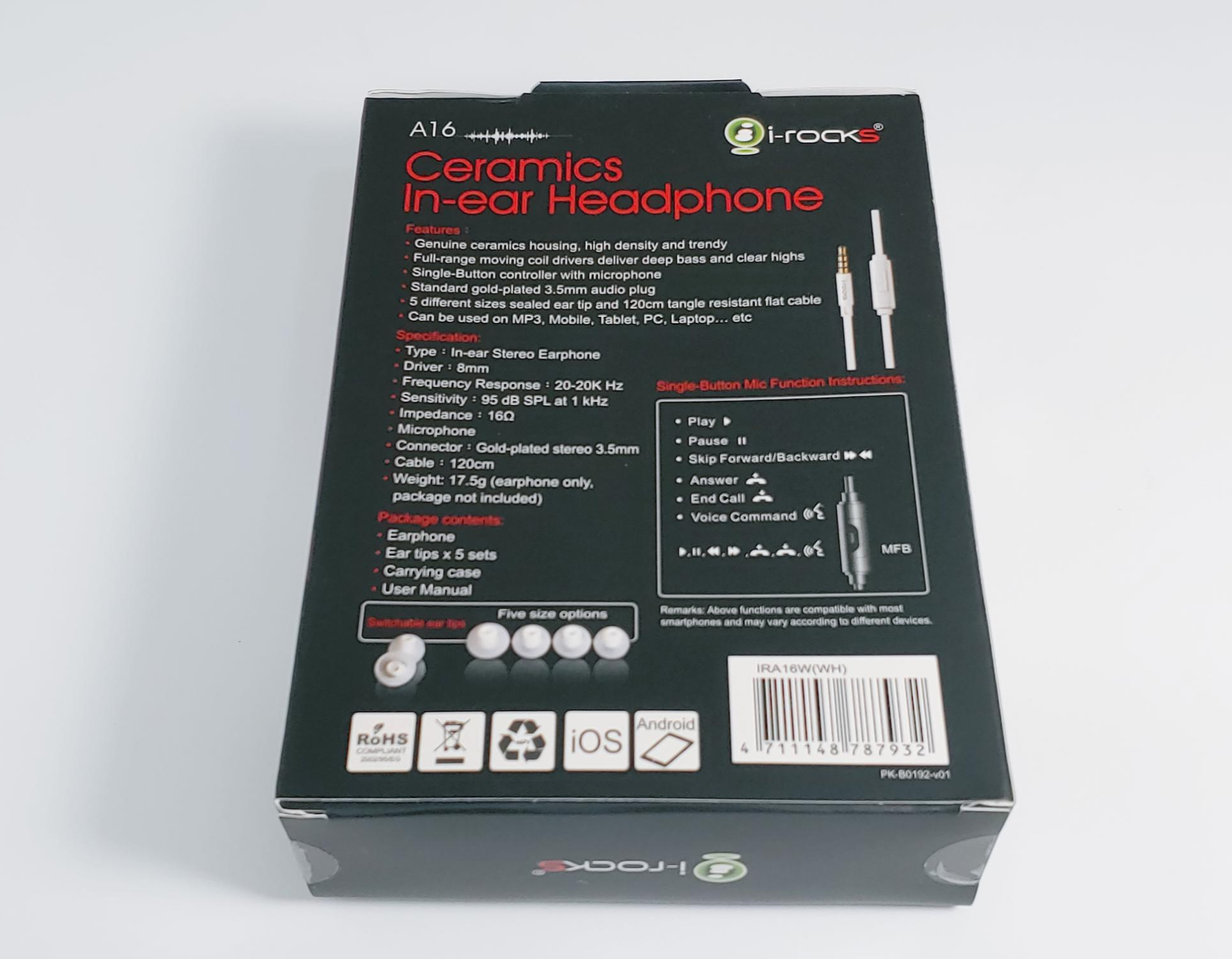 | 모델명 | I-Rock 세라믹 이어폰 A16 |